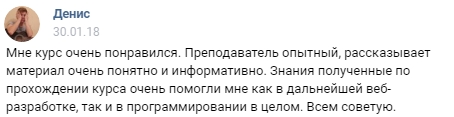 Курс был полезен для меня, как для начинающего девелопера, и в принципе я не пожалел потраченными деньгами