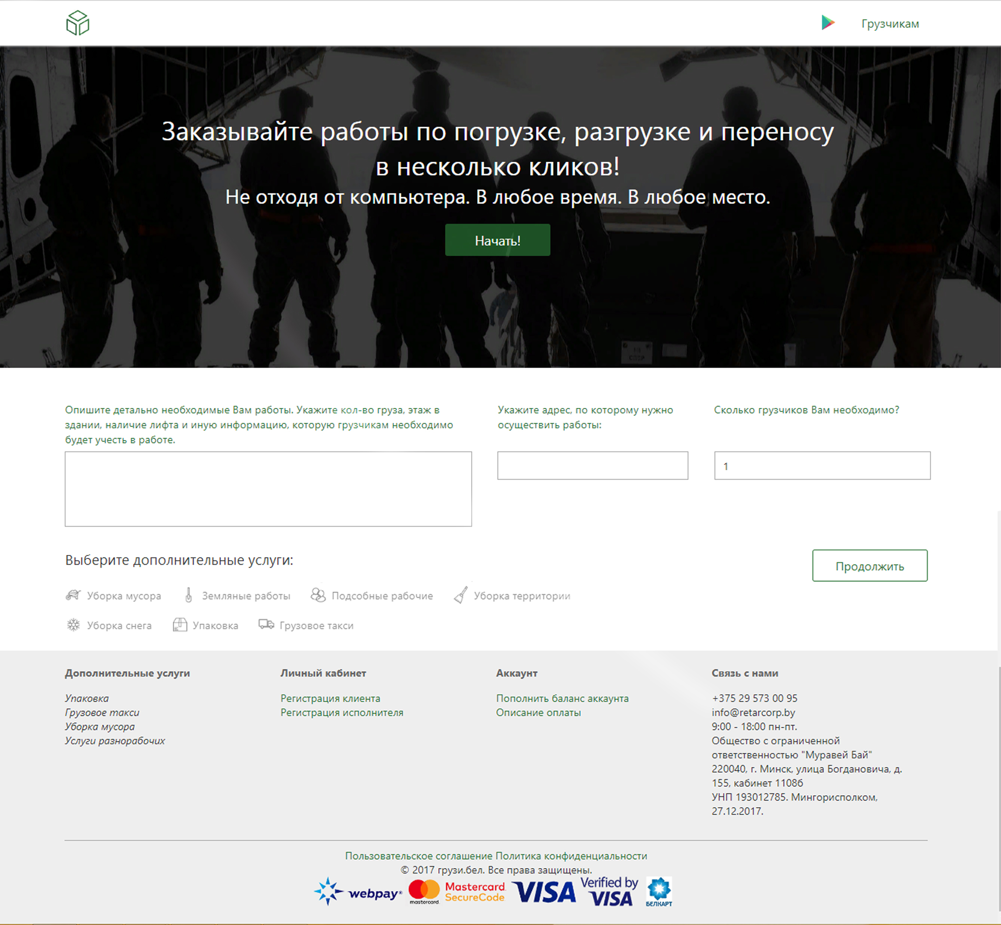 Мобильное приложение для заказа услуг грузчиков Грузи.БЕЛ