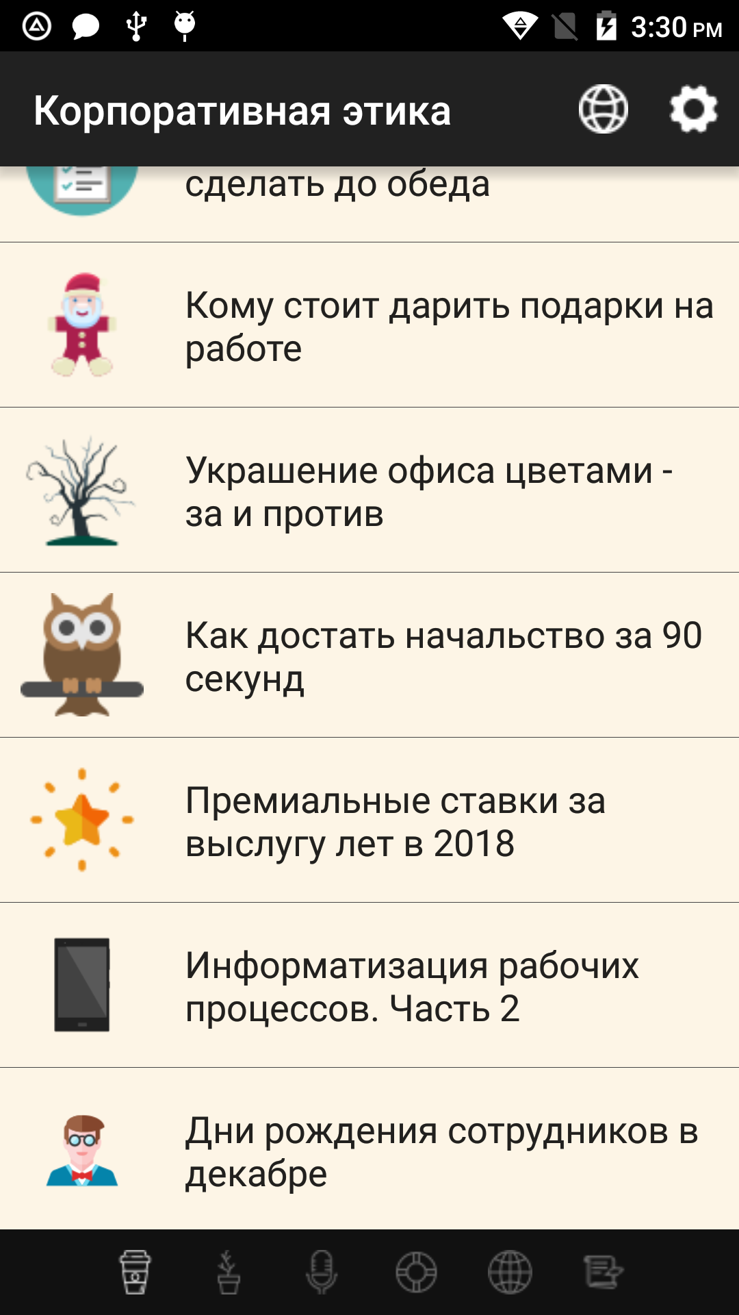 "Справочник" - название коробочного решения по организации данных в виде мобильного приложения. Легко адаптируется и интегрируется с любым веб-сервером, используя его как источник данных. Приложение предназначено для отображения перечня информационных статей по любой тематике для любого бизнеса и обладает рядом полезных функций.