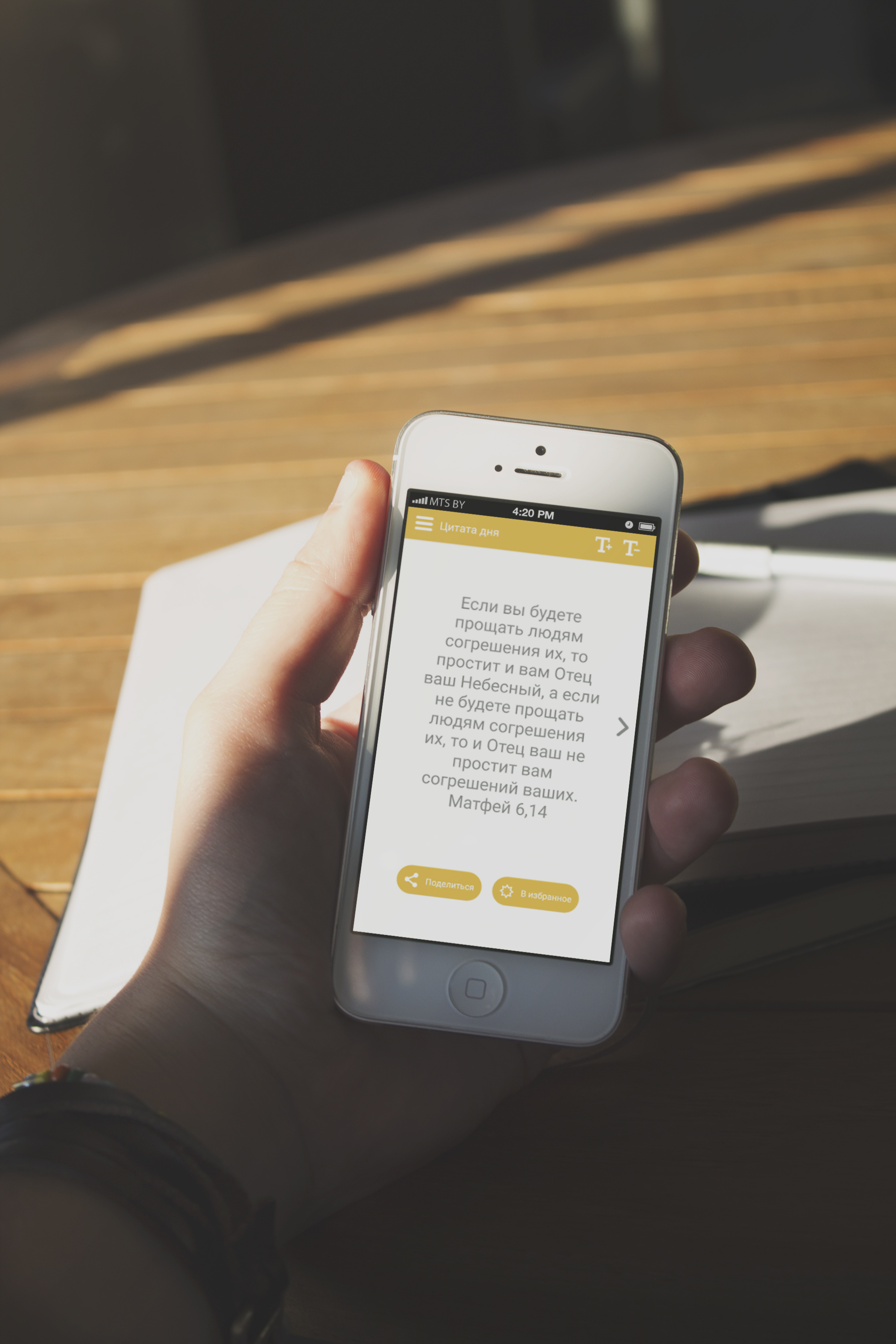 Приложение получает данные с центрального веб-сервера, управление которым осуществляется при помощи разработанного для этого интерфейса (админпанель). Пользователи видят цитаты как только они появляются на сервере либо - при отсутствии интернет-соединения - сразу, как только цитата была загружена приложением. Доступ к цитатам может осуществляться и без интернет-соединения.