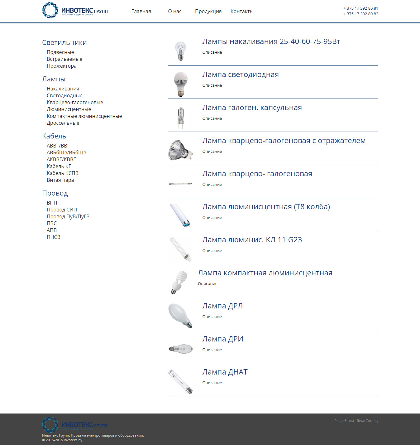 Сайт был выполнен как корпоративный сайт-визитка. Главная страница была разработана как мини-лендинг, поскольку основной источник трафика сайта - посещения с визиток и ссылок с других сайтов, и львиная доля посетителей попадает именно на главную страницу сайта.
